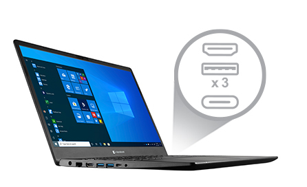 L’ensemble complet de ports permet au Satellite Pro L50 de se connecter à votre environnement de travail, où que vous soyez. Les ports comprennent un USB Type-C, et trois autres USB 3.0, un port HDMI et un port Gigabit LAN, ainsi qu’un emplacement pour carte SD et une prise casque. Le port USB Type-C permet toute une série de connexions pour charger d’autres appareils, connecter le PC portable à un écran ou transférer des données. Et vous n’êtes pas obligé de choisir, il peut tout faire à la fois ! La station d’accueil USB-C en option permet des connexions en 1 clic : vous branchez tous vos périphériques favoris tout en réduisant le nombre de câbles.